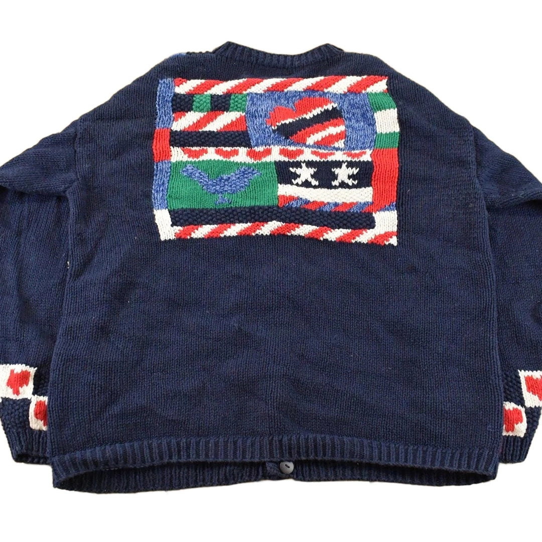 Vintage 1990s Alexandra Bartlett Grandma All Over Print Knit Cardigan Sweater Women's M