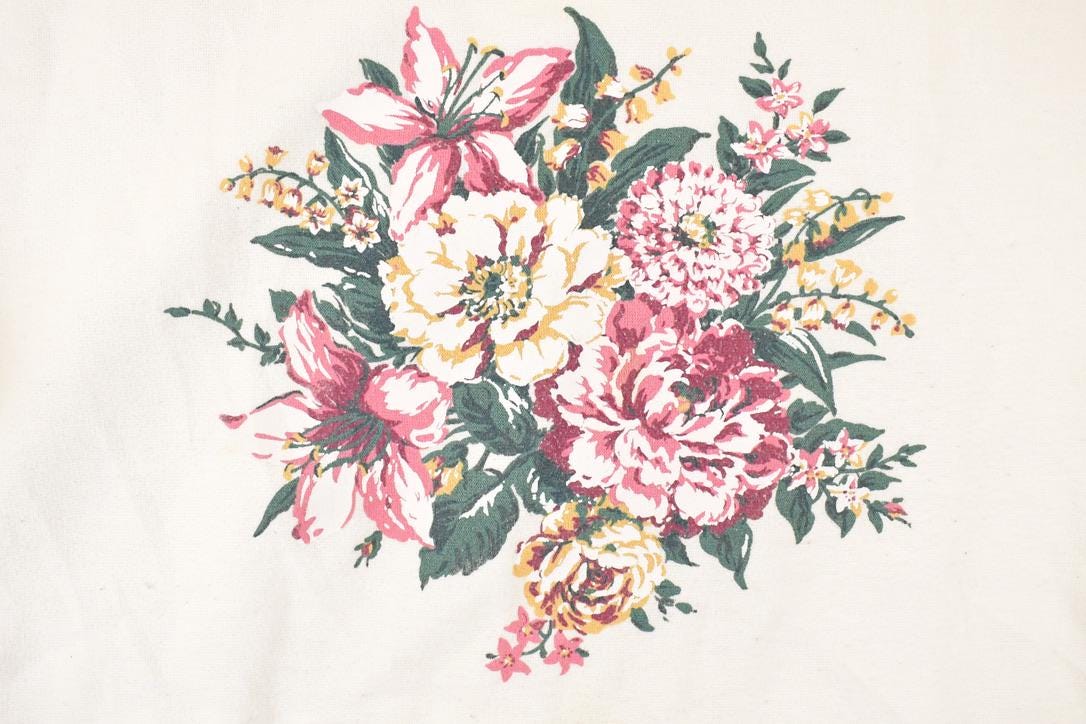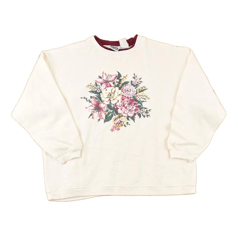 Vintage 1990s Basic Editions Floral Graphic Print Double Collar Crewneck Sweatshirt Womens L
