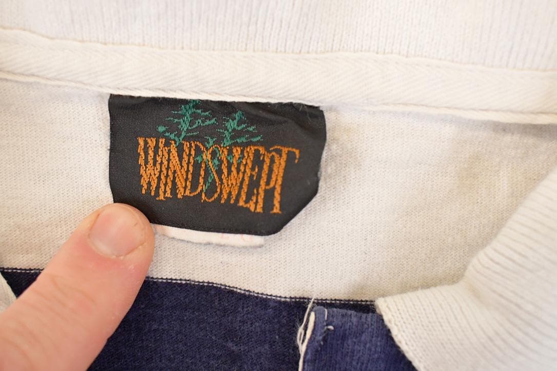 Vintage 1990s OSSSA Windswept Striped Rugby Button Up Shirt Men's L