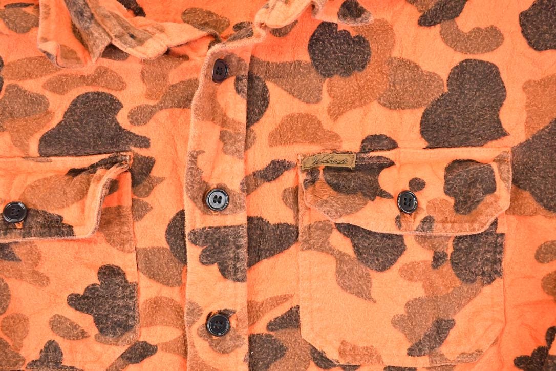 Vintage 1990s Woolrich Orange Camo Button Up Flannel Shirt Men's L